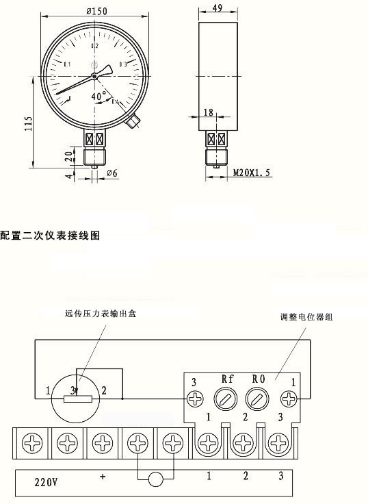 YTZ-150 | Φ150 | M20x1.5 | 與一般壓力表相同 | 溫度-40—70℃;相對濕度≤85﹪ |